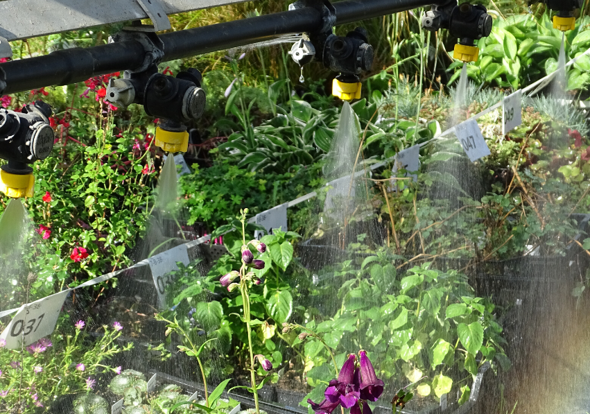 As nossas estufas não são aquecidas. Durante o período frio, as mudas são colocadas em bandejas de cultivo aquecidas com baixo consumo de energia, e as plantas menos resistentes são protegidas por velos de inverno.
