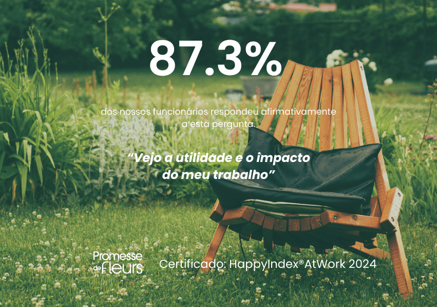 Com uma taxa de participação de mais de 80% das equipas, a Promesse de fleurs obteve uma nota de 4,18/5, com uma taxa de recomendação de 70,9%. Os 6 critérios da certificação comprometem-nos a continuar as nossas ações para reforçar o bem-estar e o orgulho de pertença de todos.