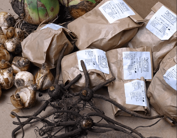 Os nossos bolbos são armazenados em local fresco (mas não em câmara frigorífica). São controlados um a um, manualmente, antes do acondicionamento, realizado o mais tarde possível para evitar qualquer risco de bolor ou secagem.